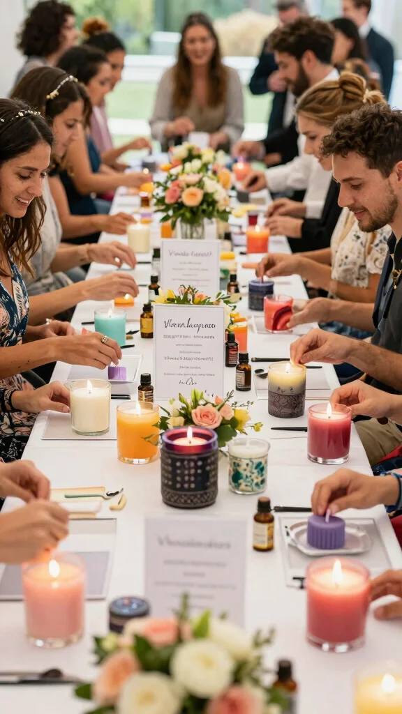 Include labels for guests to write their names and scent selections, making each candle a personalized memory of your special day. This fun activity engages everyone and creates lasting connections.