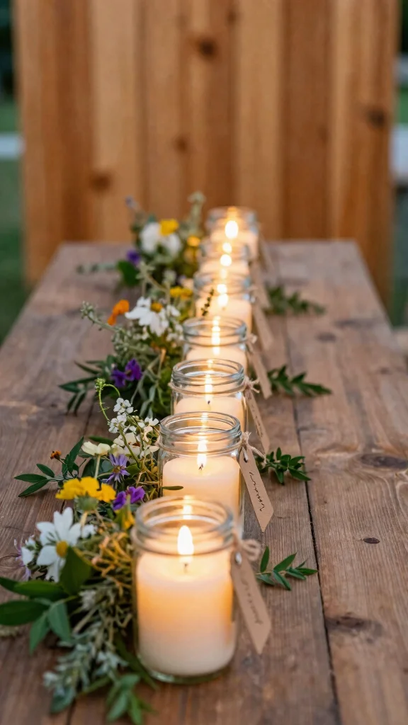 Rustic mason jar candles provide a warm, nostalgic touch that your guests will love.