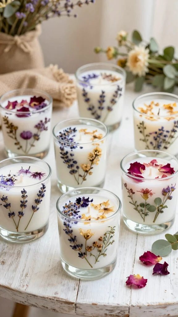 Add a charming twist to your scented candles by decorating them with dried fruit! These colorful additions enhance visual appeal and introduce subtle scents as they burn. Think orange slices for a refreshing note or dried cranberries for a warm aroma.