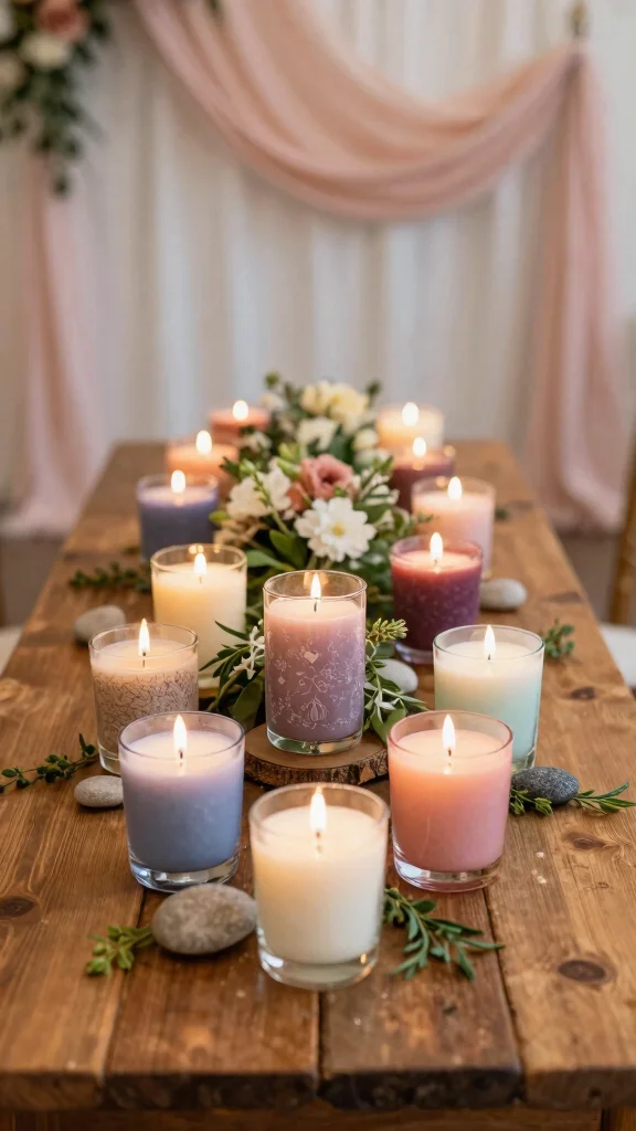 Select scents that embody your wedding atmosphere—consider romantic florals or warm vanilla. This combination enhances the overall experience for your guests.