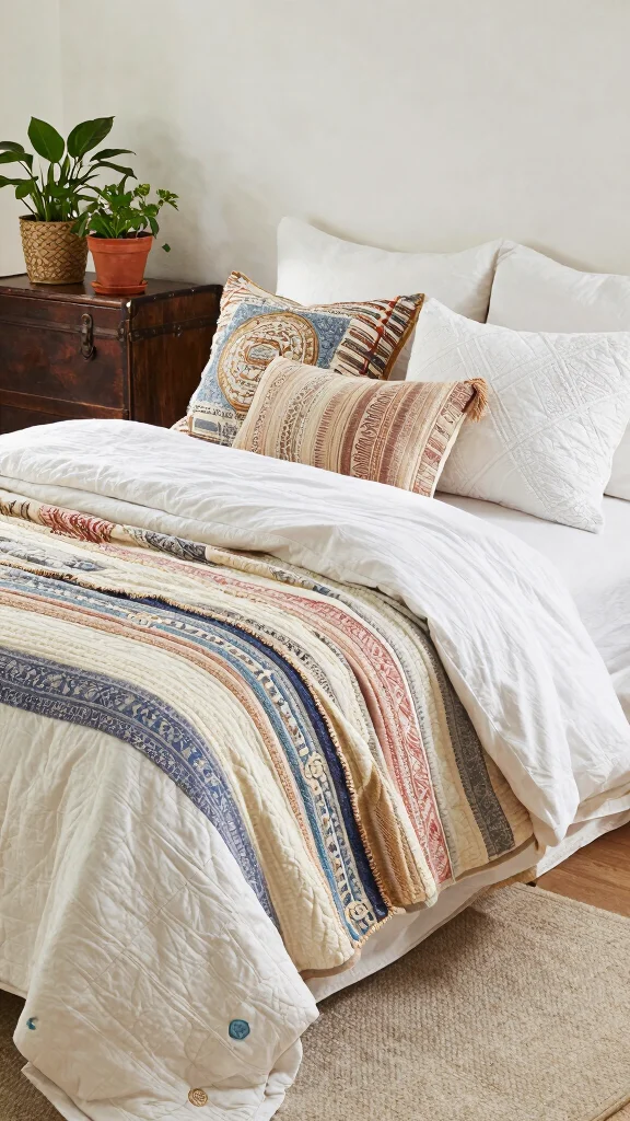 Incorporating quilted bedding elements can add depth and visual interest while keeping your bohemian vibe intact.