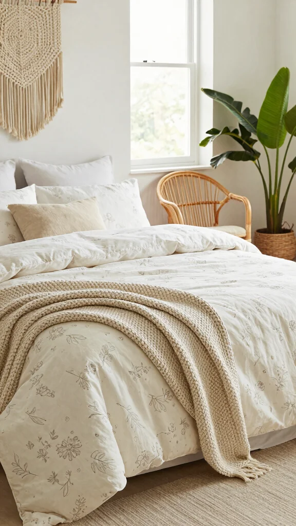 Incorporating different textures can elevate your bedding game. Layer a quilted white duvet with soft cotton sheets and a knitted throw. This mix creates a relaxed yet stylish aesthetic. Don’t hesitate to play with macramé or fringe details, which can add that quintessential boho touch. Remember, the goal is to create a space that feels inviting and comfortable.