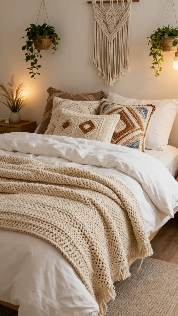 Macramé and fringe are quintessential elements of bohemian decor, bringing a playful touch to your bedding setup.