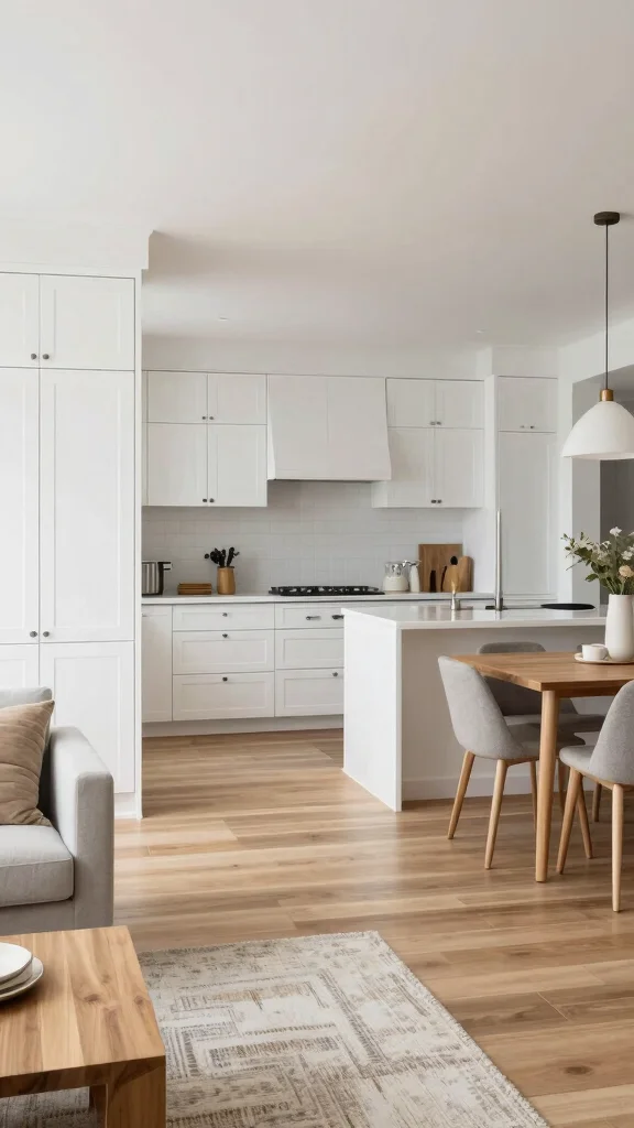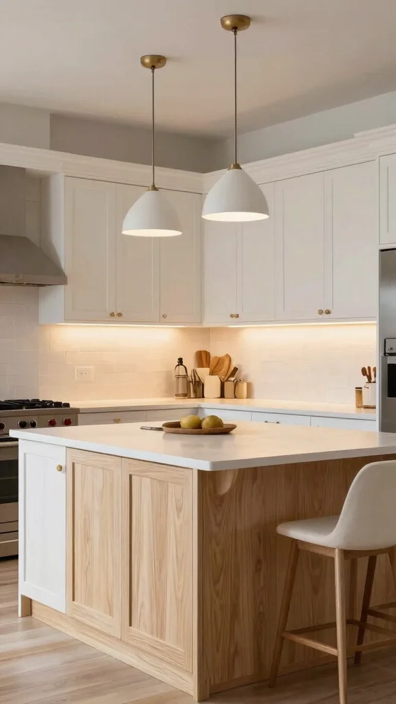 To achieve this look, consider light-colored countertops, such as white quartz or subtle marble, that will seamlessly blend with your cabinetry. Incorporating light backsplash tiles can add texture, while light wood or painted furniture ties the look together. Thoughtful lighting choices can further unify the space without overshadowing the beauty of white oak.