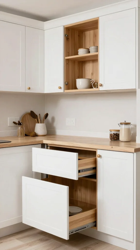 To optimize your storage potential, think about pull-out shelves that grant easy access to pots and pans, or drawer dividers that keep utensils organized. Vertical dividers are perfect for baking sheets, while lazy Susans can make corner cabinets more accessible.