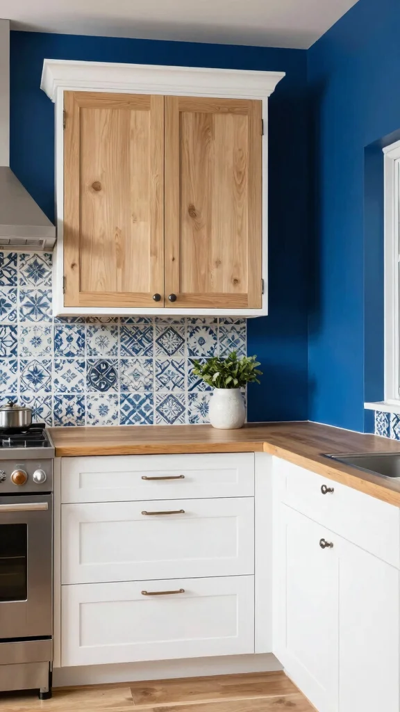 Pairing white oak kitchen cabinets with bold colors is your design shortcut to personality. Start with a navy island or mustard accents to instantly elevate the space while keeping the wood grounded. Trust a bold hue to energize the room without overwhelming it.