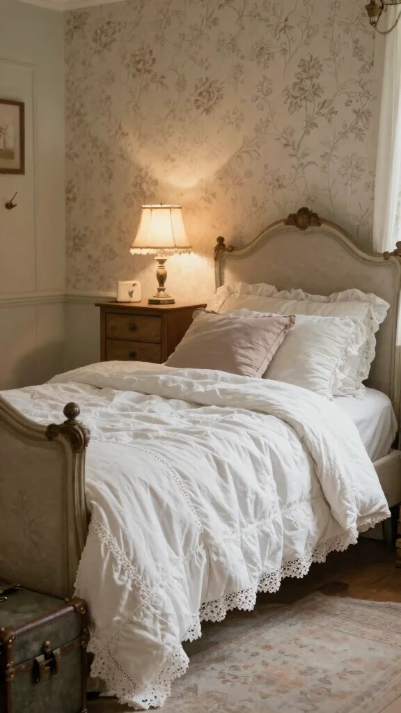 – Add a vintage bedside lamp to complete the nostalgic aesthetic.