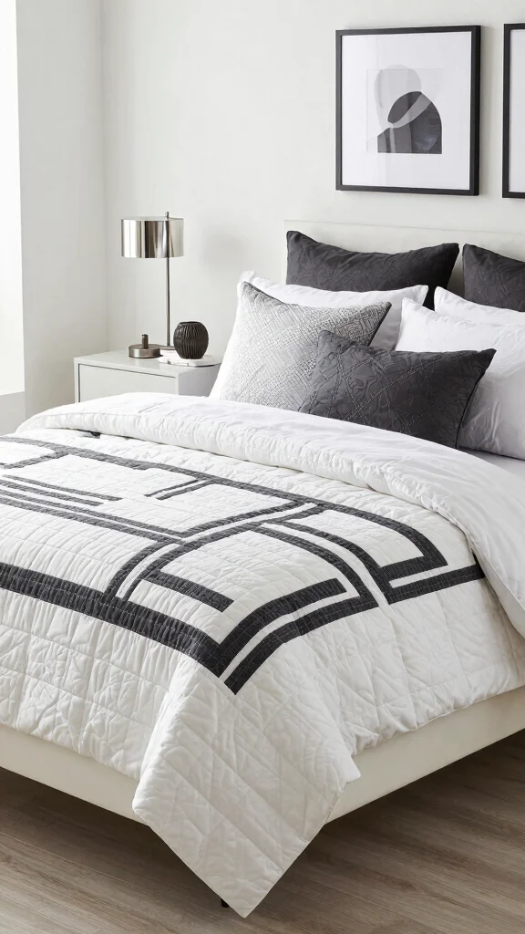 To achieve a modern feel, opt for a white quilt that features clean lines and bold geometric patterns. This sleek design approach delivers a sophisticated look that pairs well with minimalist decor. Keeping surrounding decorations simple and streamlined allows the quilt to shine as the central focus of the room.